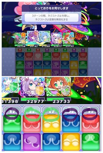 蒸気と暗闇の塔もそろそろ終わりますね。 昨日毎度のようにノルマの1日5周をしていた時、あることに気がつきました。 「あれ?ネクストぷよ隠されているのに見えるじゃん。」と。 紫、緑、緑、紫、紫に見える 試しに右上5ぷよを消してみると、見えていた色ぷ…