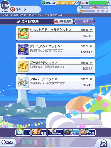 月一でシルチケ、ゴルチケ、プレチケをぷよpで一定数交換できますが今月はどうか。 プレチケ パンにミセスサッカロがいると思うと食べれないかも ゴルチケ 戦乙女に注目していたらスクショを忘れた シルチケ 人間少なめ アリスシリーズの☆7出てもいいのよ? …