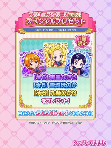 プリキュアとぷよクエが再コラボしました。 3人もゲット! ⬇︎前回のプリキュアコラボは約2年前でした。 ガチャはぷよクエおなじみガチャパワーを貯めるタイプとステップアップタイプがあります。 石が無くとも無料で回せる分があるのでぜひ回してください。 …